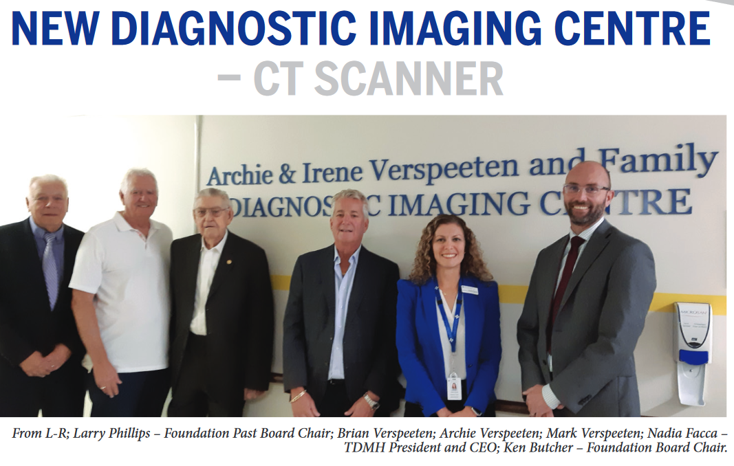A gift of $1.8 Million from the Verspeeten family will fund the replacement of the existing Computed Tomography (CT) scanner in the Diagnostic Imaging Centre with new ‘State of the Art’ equipment early in 2024. This includes a new CT scanner and other Diagnostic Imaging improvements.
